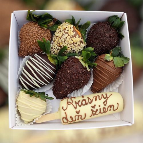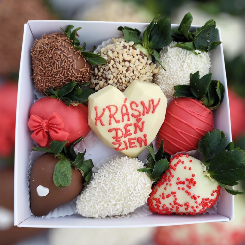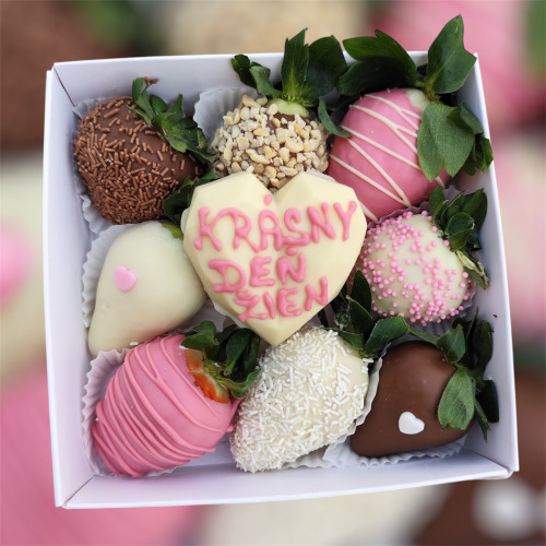 Bonboniérka obsahuje 8-12 ks jahôd a srdiečko s nápisom “KRÁ...