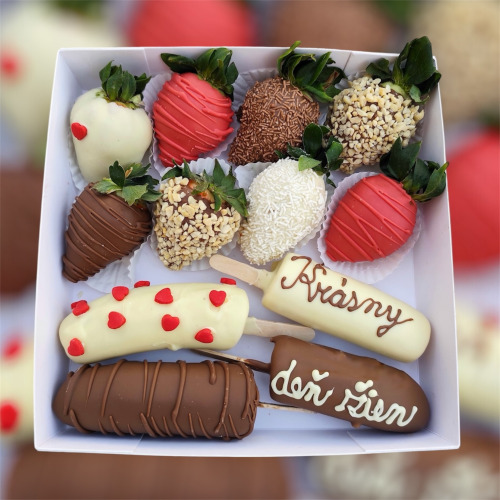 Bonboniérka obsahuje 8-12 ks jahôd a 4 banániky s nápisom “K...