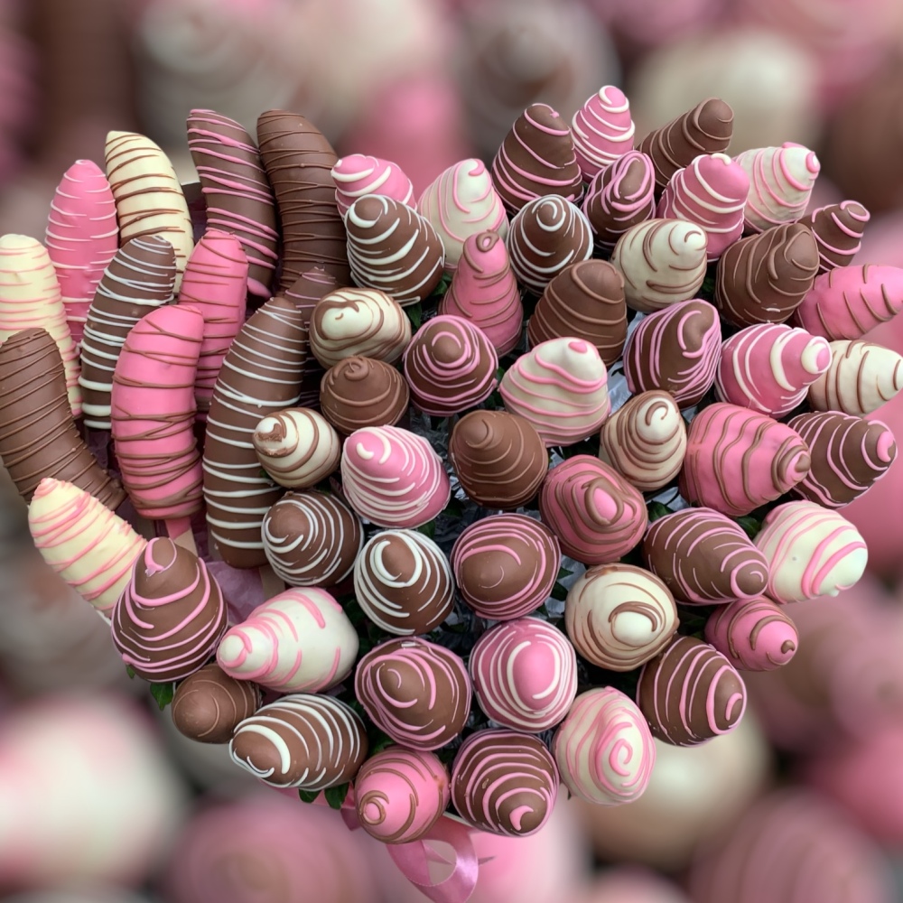 V Srdci L je 40-55 ks jahôd podľa veľkosti a 10 ks banánov.